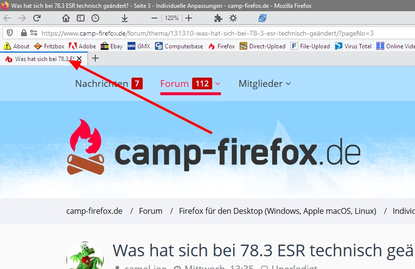 Mit der 78.3 ESR sieht es aber so aus. Es ist ein einzelner Tab zu sehen. Kann man das anpassen?