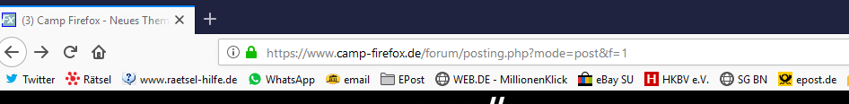 gibts es eine Möglichkeit importe Lesezeichen so wieder placieren wie am Anfang Lesezeichen Symbolleiste erscheint nun separart nicht mehr wie bisher d.h. siehe Bild[attachment=0]Lesezeichen.PNG[/attachment]