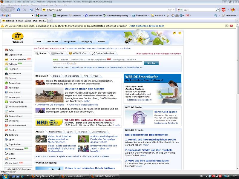 Hallo ich habe WEB.DE als meine Startseite eingestellt. Seit 3 Tagen wenn ich den FF starte werden von WEB 2 Seiten geöffnet. Zuerst die WEB.DE Suche und die normale Startseite.