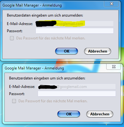 habe unter Google Mail Manager 0.6 / 3 Mailkonten.Seit heute wird das Passwort einzeln verlangt [attachment=1]Mail.PNG[/attachment] Passwort wird aber nicht angenommen,Pop-up-Fenster