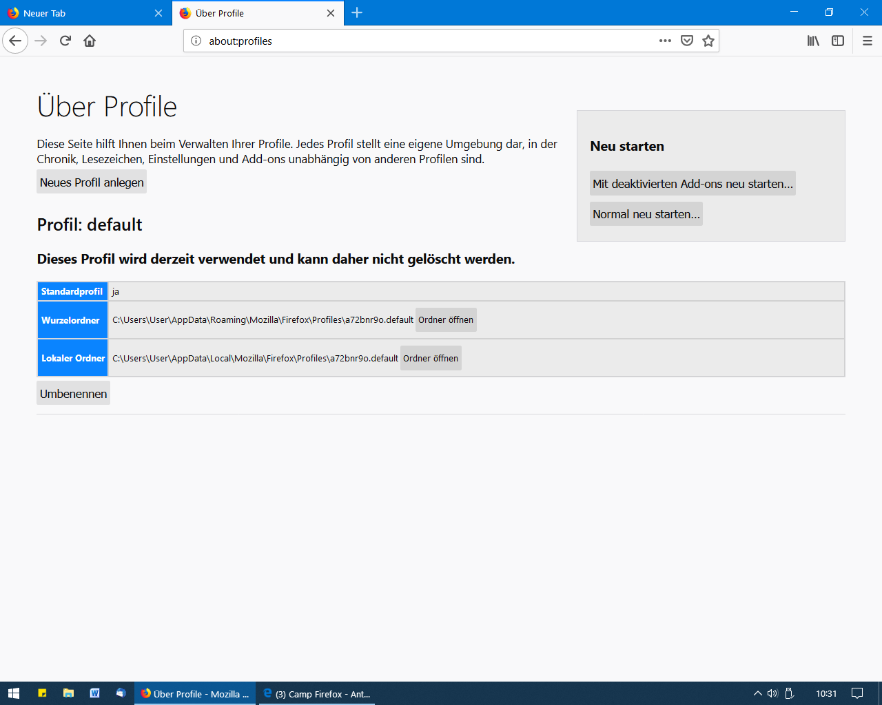 ich bin endlich auf Win 10 umgestiegen und habe Firefox installiert und stelle fest, der Profil-Ordner ist unauffindbar. Es soll unter Benutzer>User sein, es stimmt jedoch nicht und Appdata kann ich in Win 10 auch nicht finden.