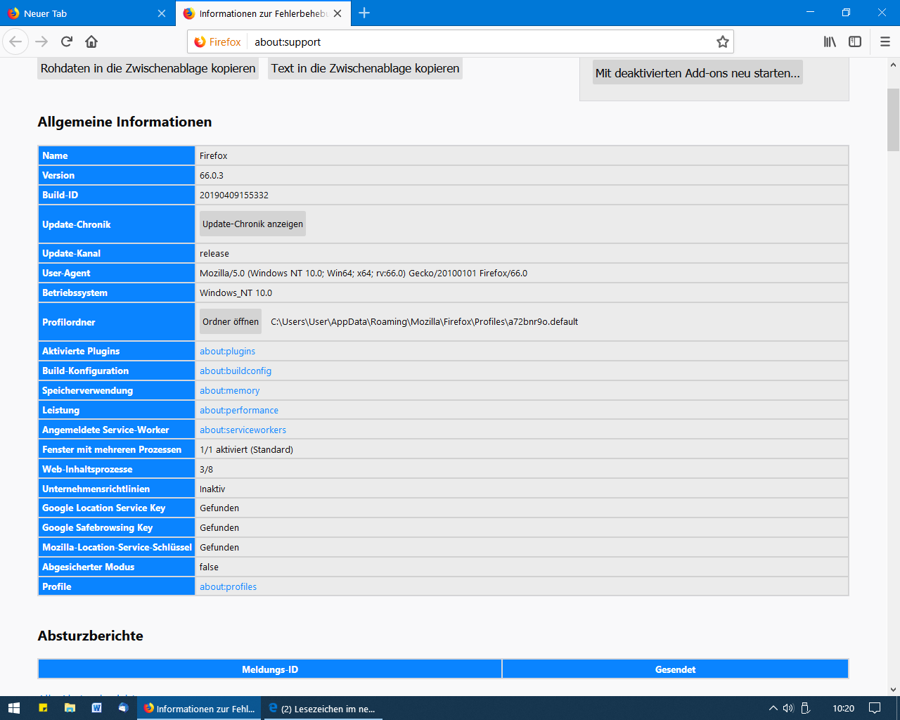 Die deaktivierten Erweiterungen Aktion verstehe ich nicht recht. Ich soll alle Erweiterungen deaktivieren? Ich kann es gleich ausprobieren.