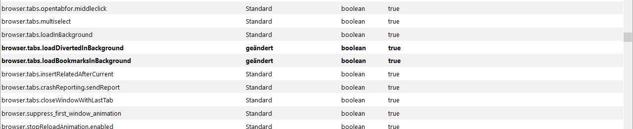 ich bekam kürzlich ein Newsletter von Mozilla Ffx und danach waren meine Settings vermurkst, u.a. die Lesezeichen öffneten nicht mehr in einem neuen Tab im Hintergrund. Es gab aber ein einfacher Fix über about:config im Internet, das ich angewendet habe - und es hat nichts gebracht.