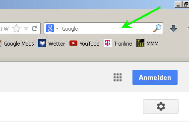 Was mir auffiel, wenn ich diesen grünen Button ganz rechts oben reinziehe, bekommt dieser einen kleinen Pfeil und da sind alle Suchmachinen hinterlegt, aber das nützt mir nicht viel.