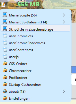 Ich nutze nun das Script aus 256 mit meinen Farben und diesem user.js Eintrag