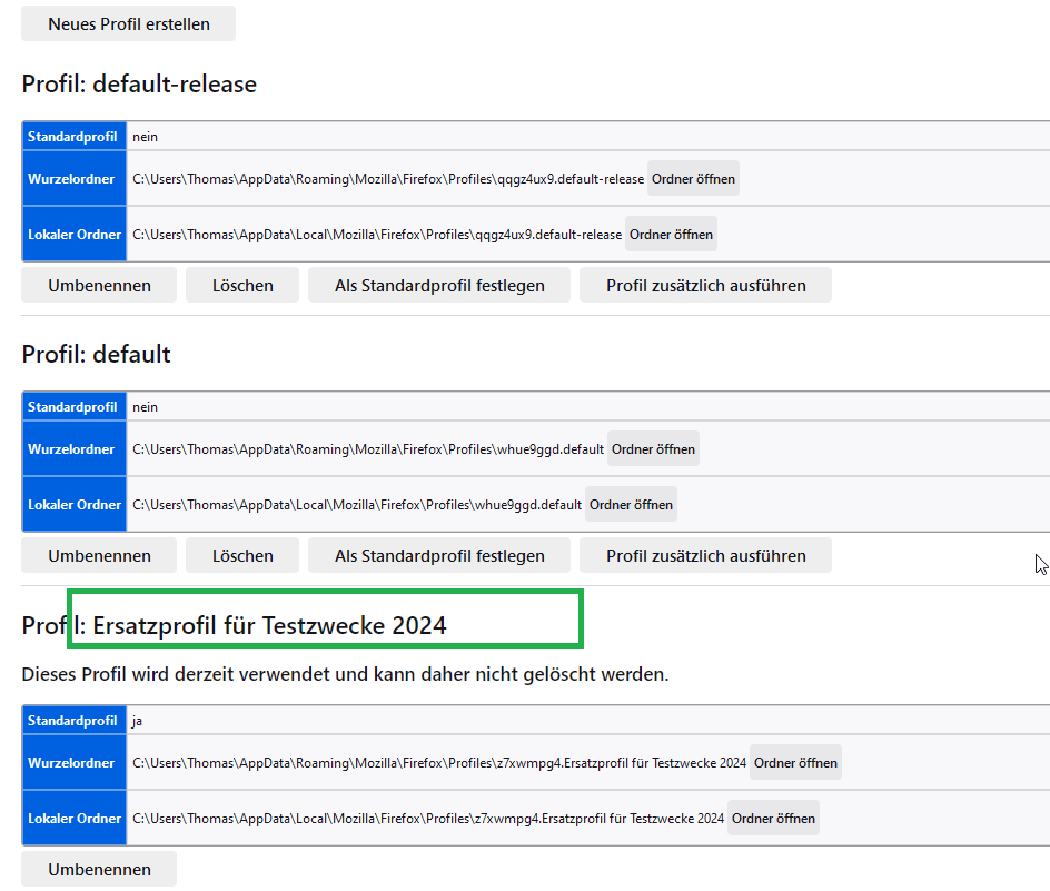 , wie mache ich das mit einem "zusätzlichen Testprofil ohne jegliche Anpassungen?"