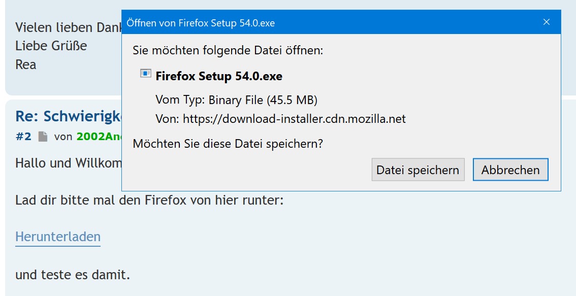 Bei mir gibt es bei dieser Art Download nur Speichern oder Abbrechen.