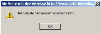 Fehlermeldung: Menüleiste "advanced" existiert nicht