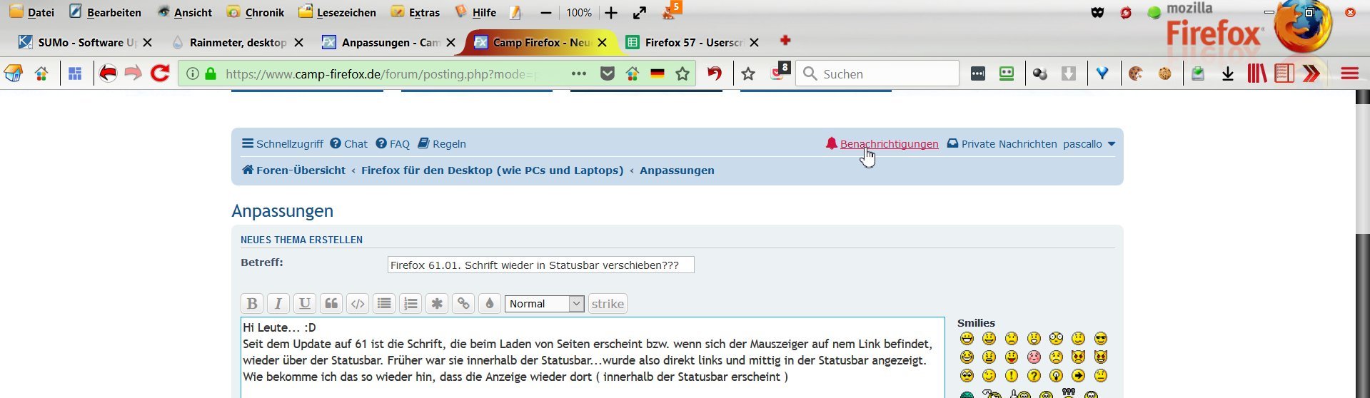 Datei userChrome.js aus der Firefox-Anpassungen.zip hab ich auch im neuen Profil nochmals neu überschrieben.