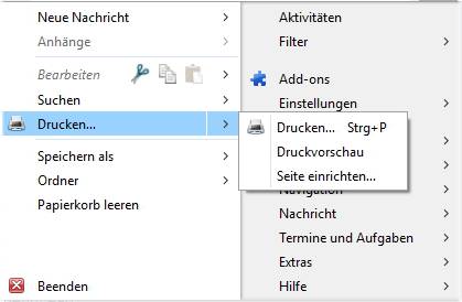 In TB finde ich ein "Untermenü" aus dem der Drucker aufgerufen wird.
