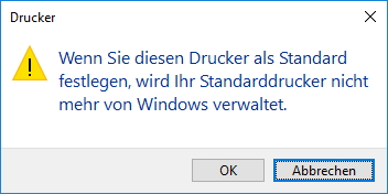 Immer wenn ich einen Drucker als Standard definiere kommt diese Meldung