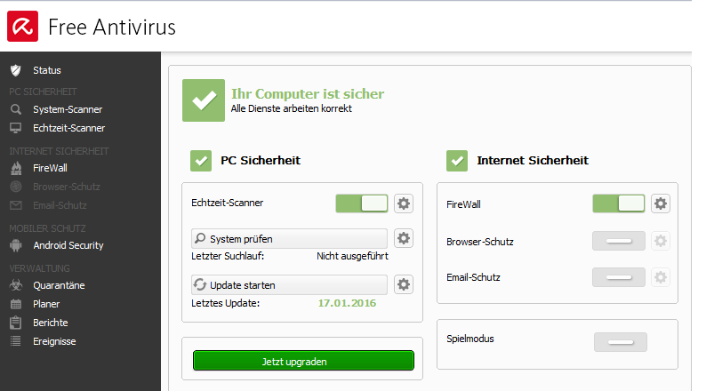 Nein. Wenn ich auf den Launcher gucke, müsste ich den erst installieren. Nur Free Antivirus ist installiert