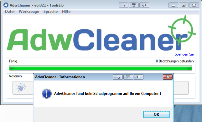 Hab den Scanner jetzt nochmal durchlaufen lassen und das kam dabei raus ;-).