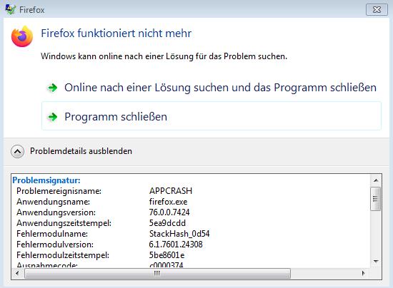 Also wenn Chrome auch abstürzt, dann liegt es offensichtlich nicht an Firefox.