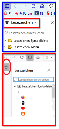 Außerdem fehlt bei Dir der kleine Pfeil neben dem Wort Lesezeichen. Das verbirgt sich dahinter: