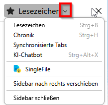 Woher der Stern in Deinem Screenshot in Beitrag 3 herkommt weiß ich nicht. Im ersten Screenshot in Beitrag 1 war er nicht vorhanden. Ist das Symbol in Beitrag 3 wirklich das Symbol der Sidebar? Bei mir sieht dieses Symbol anders aus.