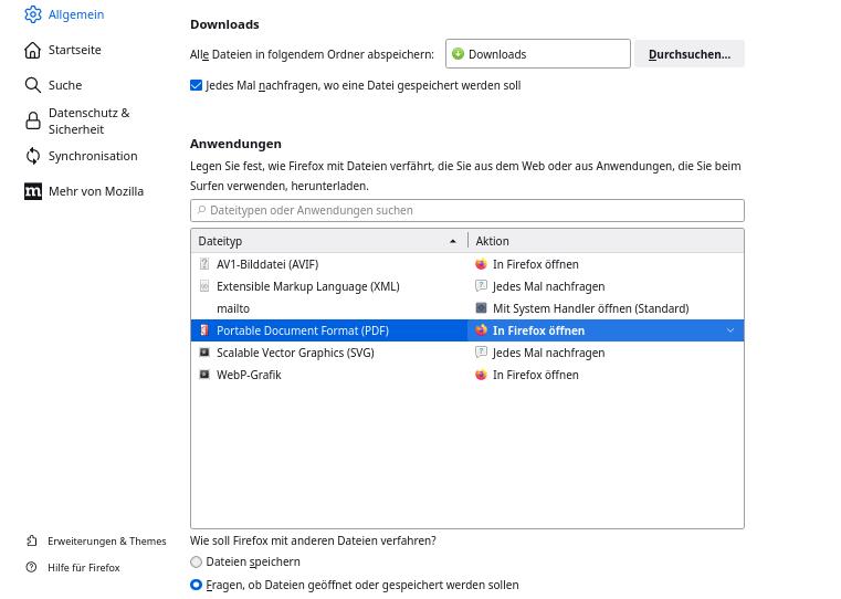 mit einem neuen Upgrade werden Pdf-Dateien in Firefox angezeigt und gleichzeitig gespeichert.