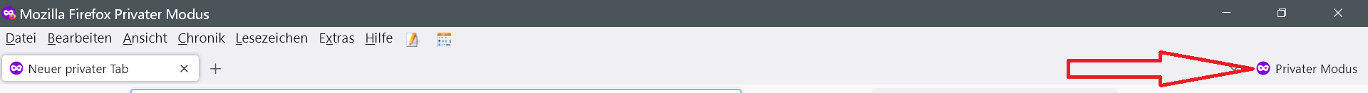 Wie man sieht, ist nicht nur der Text "Privater Modus" verschwunden, sondern auch die weiße Maske auf lila Hintergrund links daneben. Das Problem ist also gelöst. Vielen Dank für die rege Mitarbeit!