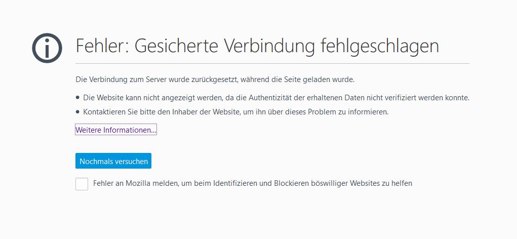 Ja Firefox wird auf diesem PC betrieben und ist aktuell, Datum und Uhrzeit vom PC ist richtig. Die Seite funktioniert in IE und Chrome aber nicht in Firefox. Warum ?