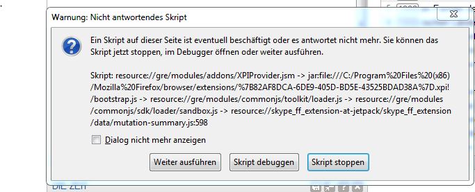 mein Firefox hängt sich regelmäßig wegen eines Scripts (siehe Screenshot) auf. DenThread mit ähnlichem Titel habe ich gelesen, kann aber dennoch nicht feststellen, wonach und wie ich in "about:support" suchen soll. :-??