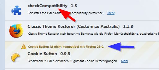 Bei mir funktioniert das mit der Erweiterung checkcompatibility 1.3.