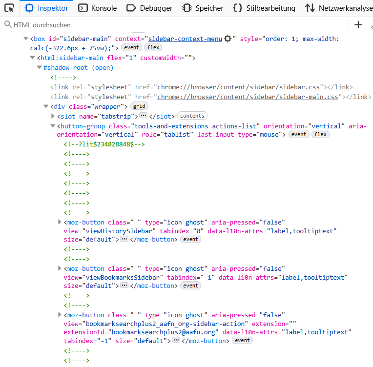 Es sieht so aus, als ob die Elemente unter #shadow-root liegen, sprich, CSS-Anweisungen müssen in die userChromeShadow.css und nicht in die userChrome.css.