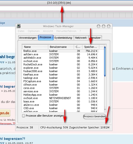 Ich habe das Einfrieren meines Systems zu provozieren versucht, um es auf die Spitze zu treiben habe ich 350 Youtube-Seiten für 30 Minuten geöffnet. Mein Laptop hat 1024 Megabyte Ram, der mehr als ausgelastet war, die CPU-Belastung etwa bei 50 %. Ich kann ganz normal arbeiten, obwohl Firefox davon mehr als 750.000 K belegt.