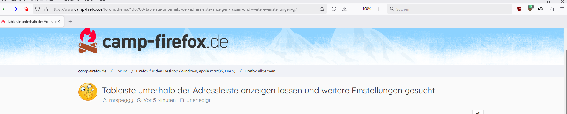 Allerdings muss ich jetzt die Lesezeichen-Symbolleiste einblenden, damit die Tabs sichtbar sind.