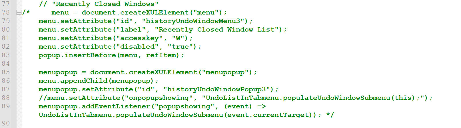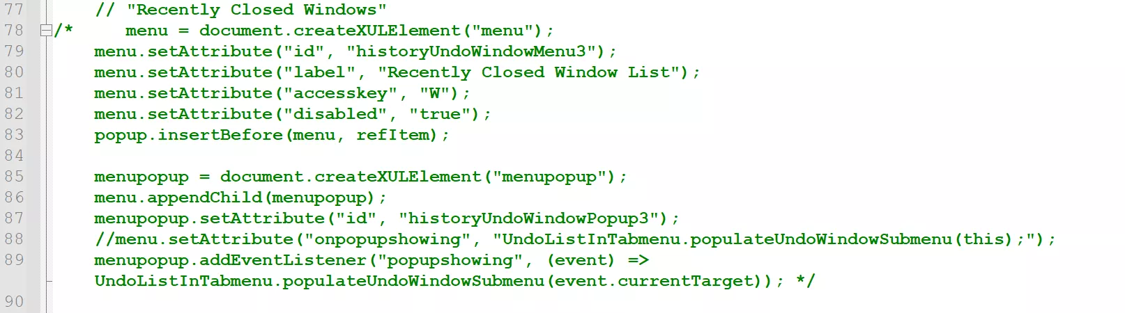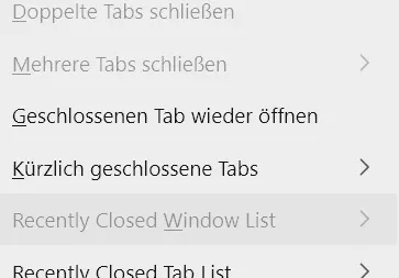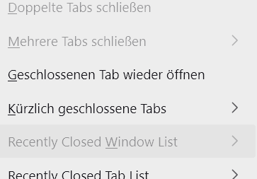 Woher stammt wohl "Recently Closed Window List"? bzw: wie blende ich diesen aus?