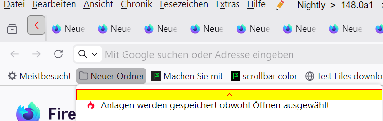 CSS/* Leerer Tab Dunkelrot */ @-moz-document url("about:blank"), url("about:newtab") { .outer-wrapper { background-color: #d00404; } }Einfacher geht es aber direkt in den Einstellungen der Seite: Neuer Tab