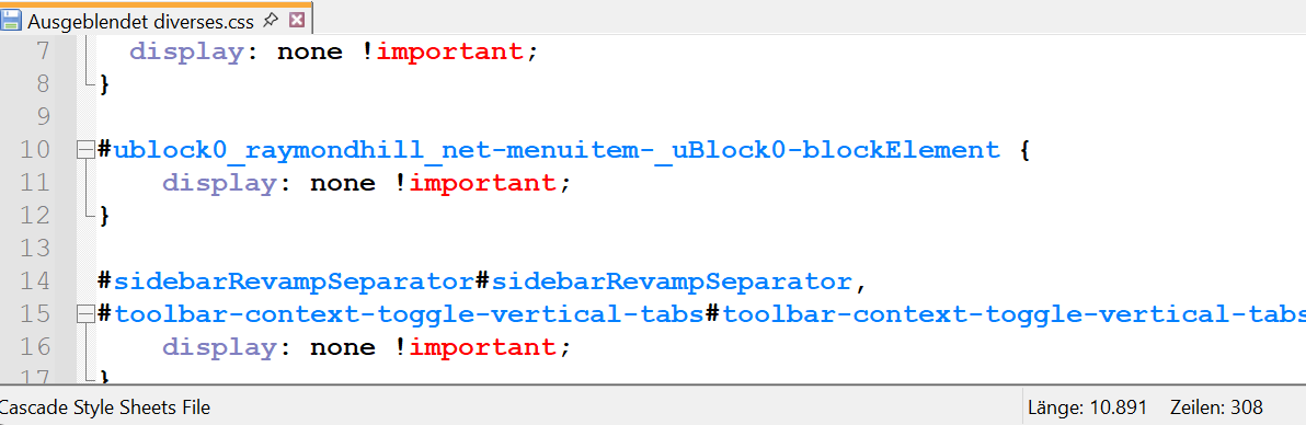 Dann schließt du die Datei und speicherst sie als userChrome.css ab.