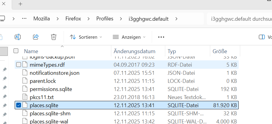 Ich finde die Datei places.sqlite mit den Lesezeichen nicht.