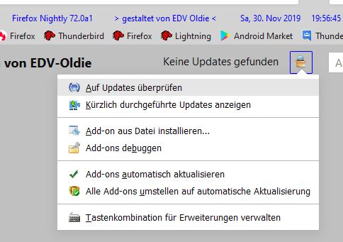Kann es sein das dass Script Update Bookmark 2 im Firefox 71.0 wieder nicht funktioniert?