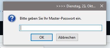 Denn wenn das Master Passwort abgerufen wird, erscheint in diesem Dialog die Uhr, aber nicht in der Titelleiste.