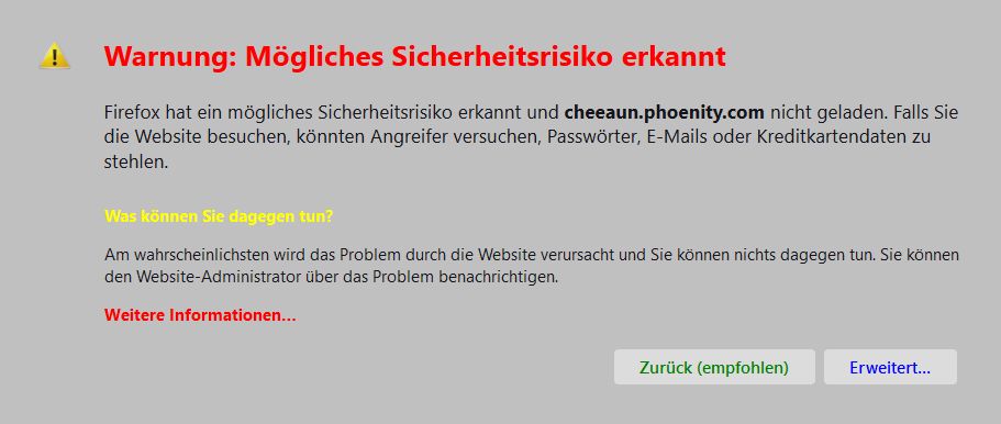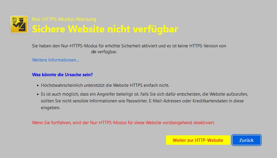 ZitatDie Weiterleitungs-Warung bei kritischen Seiten.