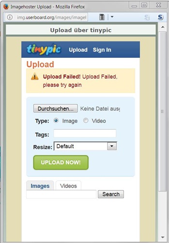 Ich habe tinypic selten benutzt, auch nur in diesem Forum, und immer nur dieses kleine Kästchen zu sehen bekommen.
