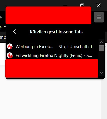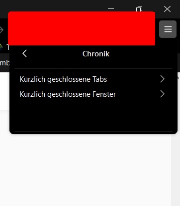 Seit V. 89 (vllt. auch schon 88) ist es so: Hamburger Menü (oben rechts idR) -> Chronik -> Kürzlich geschlossene Tabs (bzw. Fenster) -> und erst dann sehe ich die Einträge. Das war vorher einfacher.