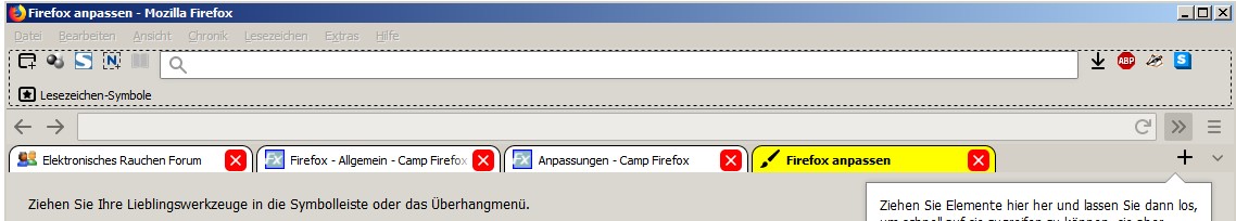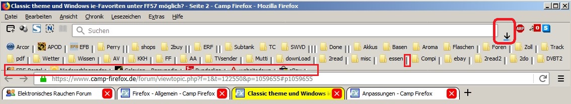 - Wenn ich einen TAB per Maus in einen Ordner kopieren will, verschiebt sich die Adressleiste (navigation-toolbar) nach oben und wenn ich nicht eine 3. Lesezeichen-Zeile eingerichtet hätte, könnte ich z.B. nichts in einem Ordner der 2. Zeile ablegen (hoffentlich war das jetzt verständlich :oops: )