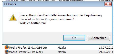 Kann das erste Firefox 5.0(x86 de) nicht deinstallieren.