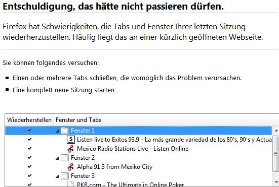 beim Schliessen von Firefox erhielt ich einige male die Meldung das Firefox abgestürzt ist.