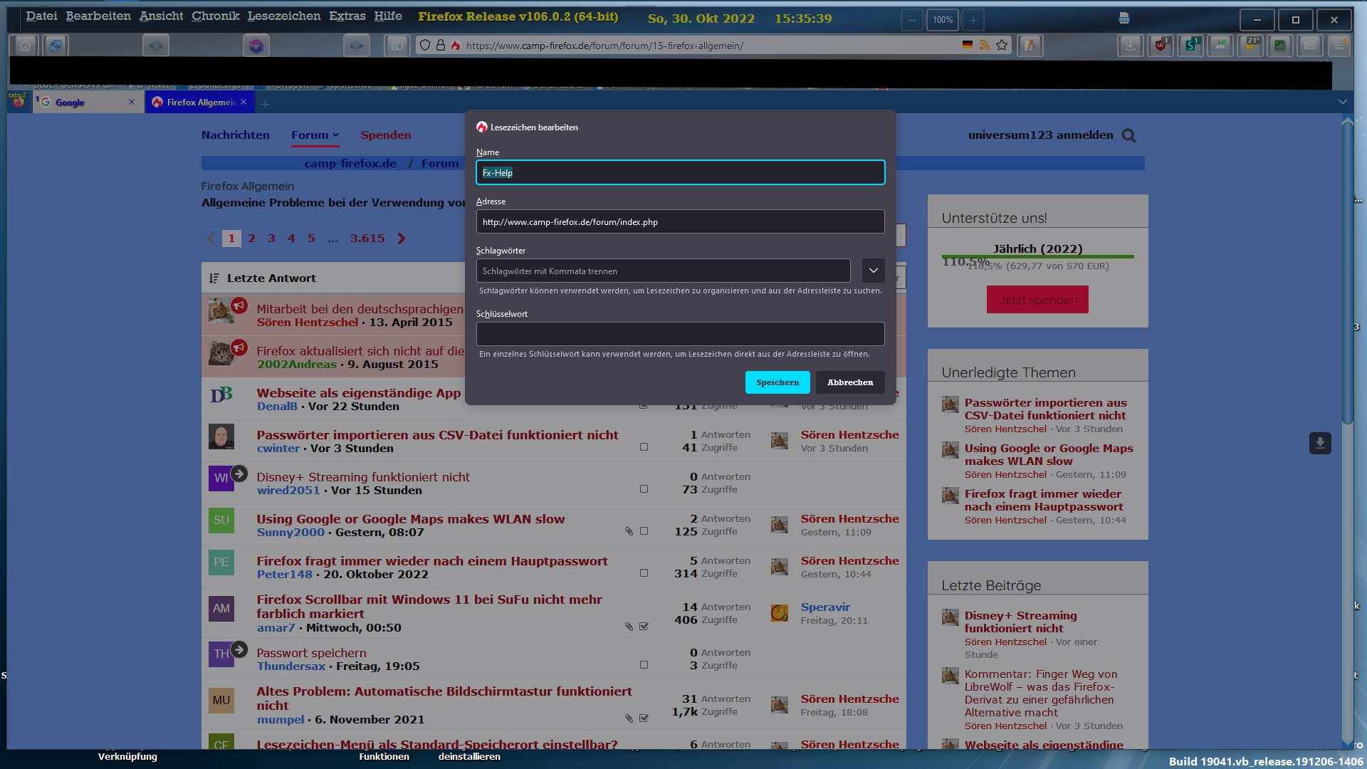 die frage ist geht dann bei euch die Lesezeichen Bearbeitung