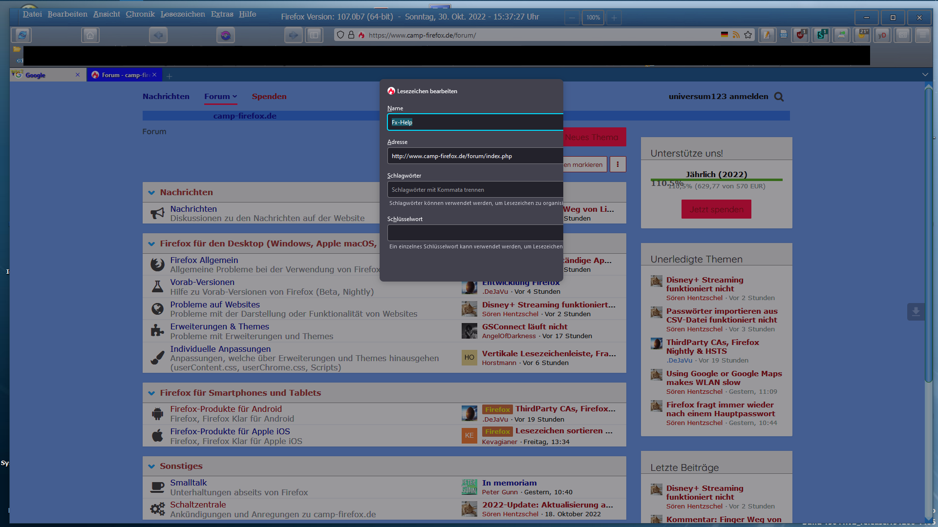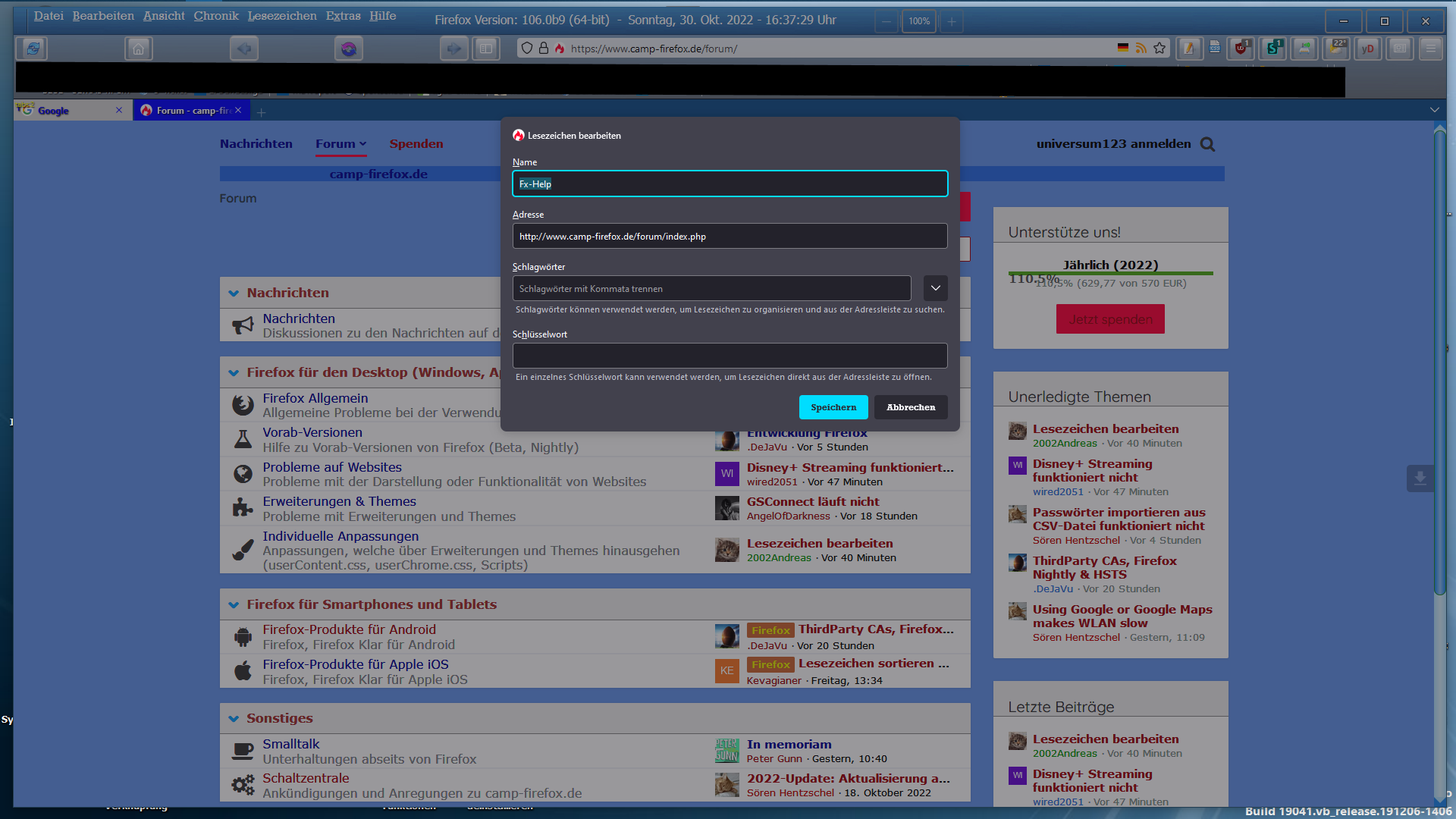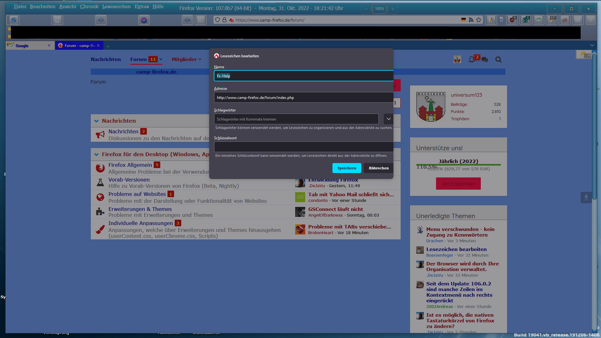 das die Lesezeichen einfach verschwinden wenn man mehrere Tabs öffnet (Sporadisch)