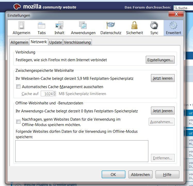 Dieser Satz fehlt bei 2 PCs. Webseiten cache belegt 5.9 MB