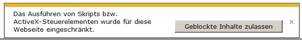 Wie beschrieben zeigt der Internet Explorer den Inhalt an, wenn ich geblockte Inhalte zulasse