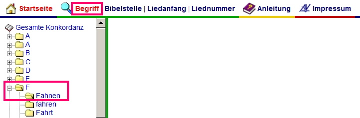 Im Feld rechts wird dann der Inhalt von "Fahnen" angezeigt.