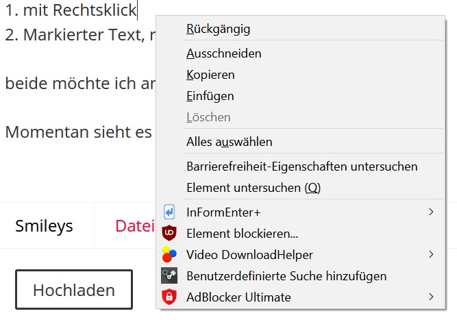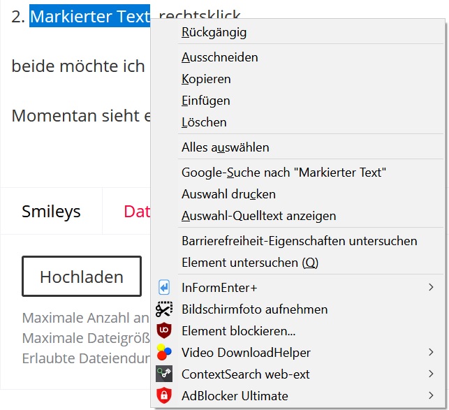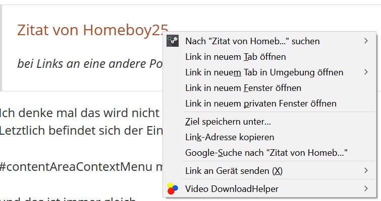 Die Firefox eigene Kontext Suche wird mir zb. ganricht mehr angezeigt...