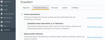 Ich konfiguriere zurzeit einen FF ESR 38.1.0 für eine Firma. Wie kann ich den neuen FF-Statusbericht deaktivieren? Ich finde dazu nichts bei Mozilla. Scheint ein neues Feature zu sein.