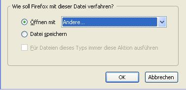 Folgendes Problem: Ich lade sehr viele Dateien mit der selben Dateiendung runter. Nun habe ich 2 Programme die diesen Typ öffnen können. Jedoch sieht Firefox nur dass eine als Standard an und das andere muss ich immer lange über Andere Programme suchen(siehe Bild).