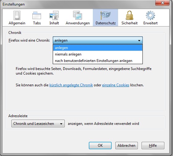 Am Dropdown für die Chronik kann ich mir nur aussuchen