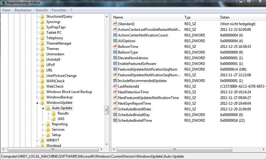 HKEY_LOCAL_MACHINE\SOFTWARE\Policies\Microsoft\Windows\WindowsUpdate\AUdort bei dem eintrag:
